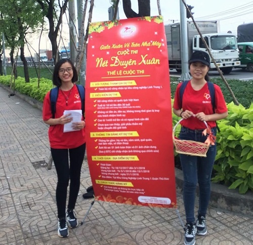 Bạn Huyền Trang, thành viên BTC chia sẻ: “Có nhiều hôm tranh thủ xong giờ học là cả đội chạy xe máy xuống Khu Chế Xuất Linh Trung I để truyền thông, phát tờ rơi cho các công nhân nữ, hướng dẫn các anh chị đăng ký tham gia Nét Duyên Xuân. Còn khó khăn, vất vả nhưng nhận lại là nụ cười, sự quan tâm của anh chị công nhân dành cho chương trình đó là niềm động lực lớn để chúng mình cố gắng thực hiện tốt sự kiện Gala Xuân về trên nhà máy”.