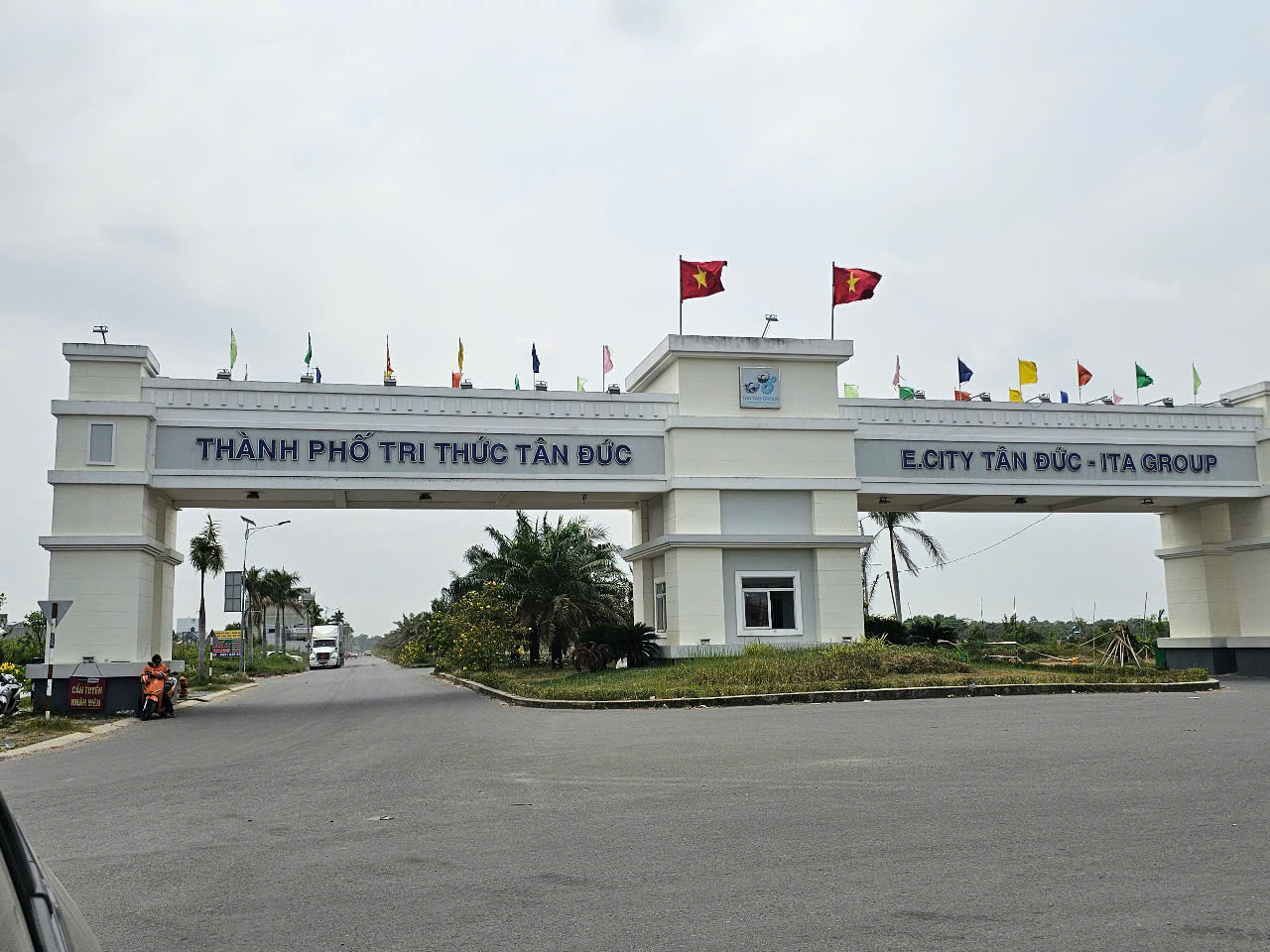 Hiện nay, chủ đầu tư đang phát quang toàn bộ diện tích tiếp giáp ĐT 824, triển khai làm cơ sở hạ tầng đường Song Hành, hoàn thành cổng chào khu E. City Tân Đức…